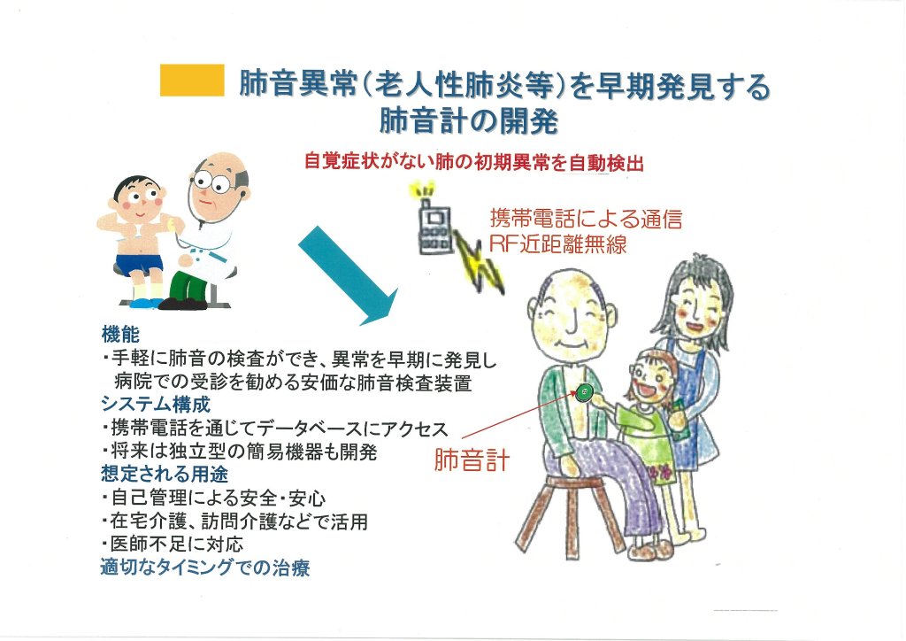 肺音検査システムの開発: 肺音計の開発 研究内容 聴診は簡便で安全・安価なすぐれた診察手段として広く用いられている.しかし,経験を積んだ医師でなければ生体の異常音を聞き分けることは難しい.そのため,これまで、一般家庭ではほとんど利用されていなかった.我々は,聴診器を日常的な健康管理に利用することを目指して,医学部の協力の基に電子聴診器を利用して肺音を記録し,肺音を自動的に検査する生体音検査システムの開発を進めている.この技術とそのシステム化は,高齢者の在宅介護などの場面で日常の健康管理に役立つと期待でき,医師が患者を診察する際の診断支援システムとしても活用できる. 共同研究機関 長崎大学医学部・歯学部附属病院 第二内科 長崎大学医学部・歯学部附属病院 腫瘍外科(第一外科) 川崎医科大学 呼吸器内科 オフライン文字認識: 新聞等の紙に書かれた文字を、人間の手を煩わせることなく、自動的にコンピュータに認識させる手法を”オフライン文字認識”といいます。 ”オフライン文字認識”は、”オンライン文字認識”に比べ、即時処理や認識率の点で劣りますが、 私たちが日常使用している膨大な紙情報をそのまま処理できる等の大きなメリットがあり、 さらなる研究の発展が期待されています。当研究室では、実用的な”オフライン文字認識” システムの研究開発を行なっています。 オンライン文字認識: デモ用システムの動画(WMV形式,約3.3MB) 近年、電子手帳等で手書き漢字入力が実用化されつつあります。このように、 人間とコンピュータがお互いにやりとりしながらコンピュータに文字を認識さ せる手法を”オンライン文字認識”といいます。”オンライン文字認識”は、 リアルタイムの操作や認識率等の点で優れており、今後様々な分野で用いられると考えら れています。本研究室ではこの”オンライン文字認識”の認識性能の向上を目 指しています。また、応用として、学習支援システムの研究開発を行なっています。 |