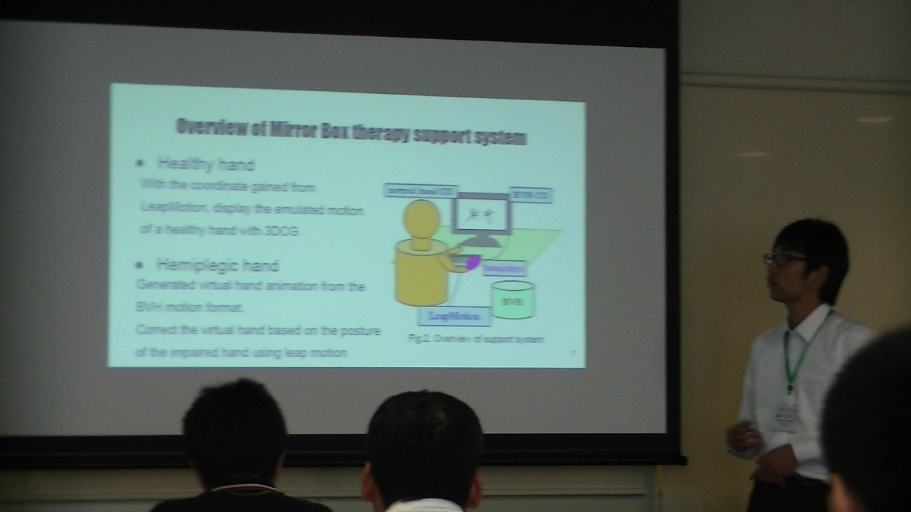 世界貿易センタービル(東京都港区浜松町)で開催された情報処理学会、第16回コンシューマ・デバイス&システム(CDS)研究発表会において、M1の別宮翔太君が「災害救援活動支援のための飛行型情報共有システム」というタイトルで研究成果を発表しました。本研究は、災害直後、ネットワークが使えない状況においても、複数人がドローンからの映像を共有したり、オンラインやオフラインでチャットができるシステムに関するものです。昨今の熊本地震など、地震国日本においては、とても注目されている技術です。発表に対して、たくさんの質問やコメントをいただき、大きな反響をいただきました。別宮君、発表お疲れさまでした!!