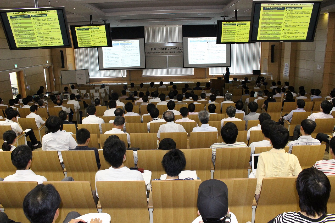 長崎大学大学院工学研究科情報工学コースでは、長崎地域の産業界、自治体、大学群と連携してIoT関連技術をキーとした地域活性化に力を入れています。そこで、これらの動きをさらに加速させることを目的として、「長崎IoT協働フォーラム2016」を開催することとしました。