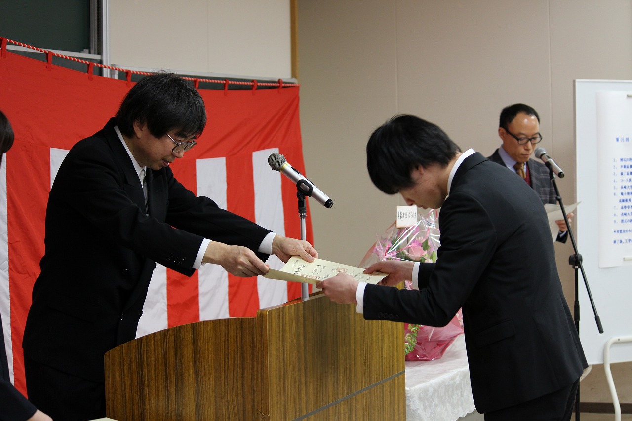小林透研究室の修士2年の磯野君と葛城君が学長賞を受賞しました。10%以下の対象しか受賞できない学会で表彰を受けたこと、世の中の人の役に立つ技術を開発したこと、そして、自ら考え、行動し、結果を出したこと、この3つが評価されて今回の受賞につながりました。磯野君は、県内1500か所以上の公衆トイレ情報をオープンデータ化し、障害の程度に応じて適切なトイレを検索できるシステムを開発しました。葛城君は、LINEと人工知能を使って高齢者の見守りロボットを開発しました。今回の受賞を糧に、今後のご活躍を祈念しています。今回の受賞、本当におめでとうございました!!